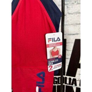 ITEM: Fila XL (2) Red & Blue Logo Seamless V-Neck Removable Pads Longling Comfort Bras