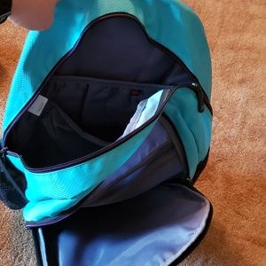 Teal. Black and purple fila backpack. Gently used. Some wear on the piping (pictured). Great for back to school!