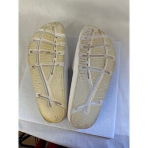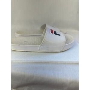 Fila sleek slides women 10 or Mens 9 unisex they are used but still in good condition has a small yellow stain on edge of outer left front