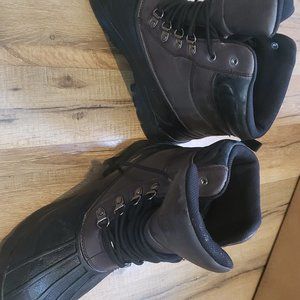 I literally wore these once...cleaned them and put some protective spray on them...no rips or tears or tread missing...cool fabric on the inside..smoke free pet free home..offers welcome...no box no tags. Mens 10.5