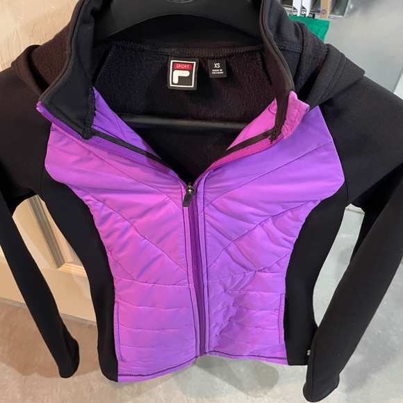Fila zip up jacket, black and purple, womens small. Gently used, great condition.