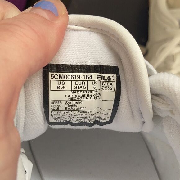 Classic old-school leather sneaker with white Fila stripe and silver name.
