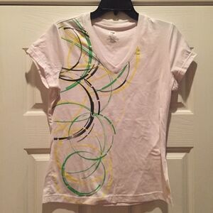 Size L White with green/yellow swirl design Please no offers on items under $8 unless added to a bundle
