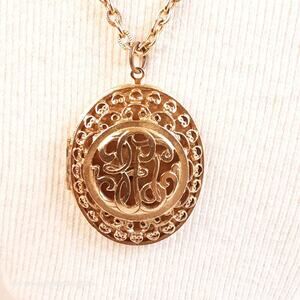 Filagree Scroll Locket Necklace And Gold Tone Textured Cable Chain