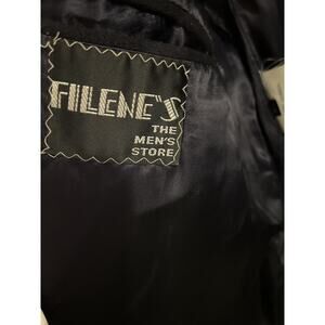 The Filene’s Men’s Store Black Cashmere Men’s Overcoat is a luxurious and classic piece perfect for various occasions such as formal events, workwear, or parties. With its long length, button closure, and solid black color, this overcoat exudes a preppy and sophisticated vibe. Made in England with high-quality cashmere outer shell material and a polyester lining, this coat is designed for the winter and fall seasons. The vintage design, lined interior, and pockets add to its timeless appeal, making it a must-have for any man's wardrobe.