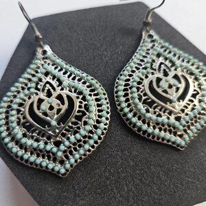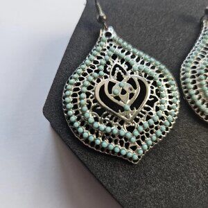 Filigree BOHO Drop Earrings Turquoise Stones Tear Drop Dangling 2.25" Drop Hook