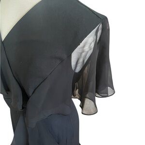 Filigree Black Ruffle Maxi Dress Wrap Vintage 80's 90's Size 12