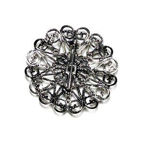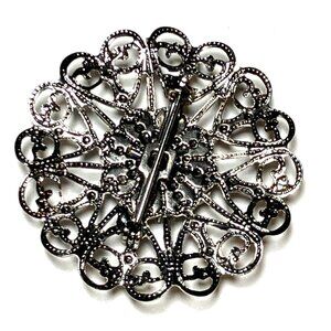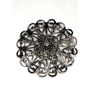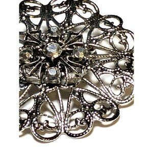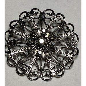 Filigree Brooch 1.7 in Pin Jewelry Silvertone Rhinestones