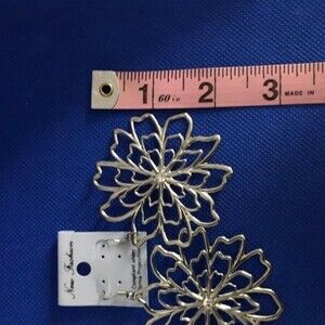 Filigree Flower Dangle Earrings Silver Tone NOC