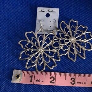 Gorgeous Unique Silver Tone Filigree Flower Dangle Earrings