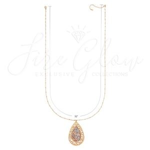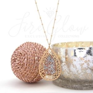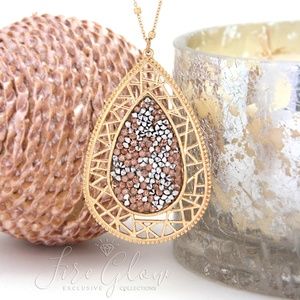 This stylish necklace features a gold tone pendant with a Rose Gold/silver rhinestone accent. Beautifully made and high quality. MATCHING EARRINGS (last photo). Pair with your favorite cocktail dress, casual skinny jeans or wear to work. Material: Lead/Nickel Compliant, Gold Tone, Rose Gold/Silver rhinestones. Measurements: Chain 32" (16" hung) (adjustable). Extension: 3". Pendant 2.25". Total Length: 18.25" clasped to pendant bottom. Bundle to save/Fast shipping. AVAILABLE IN THREE COLORS.