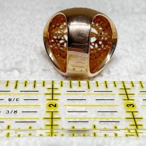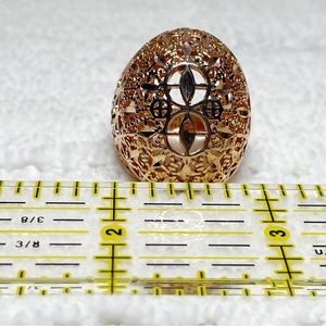 NWOT gold plated filigree ring. Bevel cuts to catch light reflections. Comes with box and drawstring bag. See photos. Unknown metal. Looks like rose gold. Made in Turkey