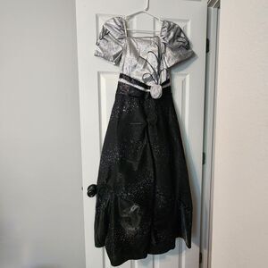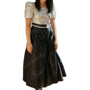 Filipiniana Terno Gown Black/Silver Floral — Gently Used (Minor Bead Loss)