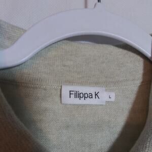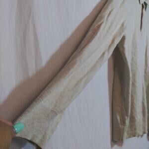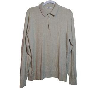 Filippa K Knitted Polo Shirt Beige Melange Long Sleeve Natural Wool Cotton SZ L