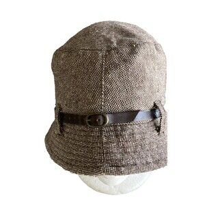 Filippo Catarzi Hat Women OS Brown Wool Blend Fedora Bucket Leather Adjustable Hat band Strap Italy