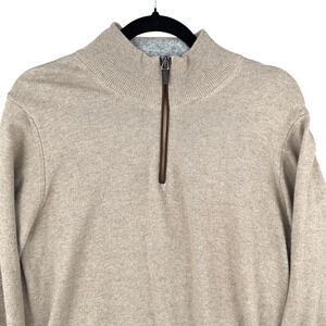 Filippo Riberti Beige Oatmeal Halfzip Ribbed Cuffs Hem Pullover Sweater Mens Medium