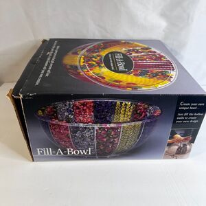 Really cool--bottom comes off and you fill each slot with a different candy, nut, or other item and can also fill the bowl itself. Comes with instructions, two push sticks, and original box