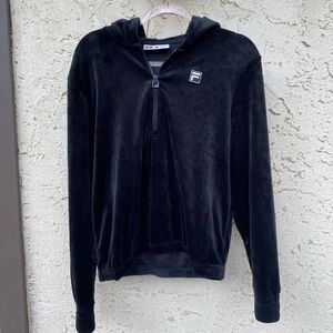 Filla Size medium black velour hoodie full zip sweatshirt Y2K