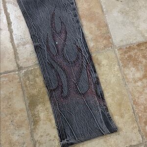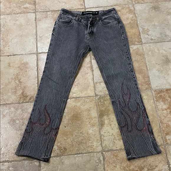 Trendy gray jeans with a distressed finish. Perfect for casual wear.