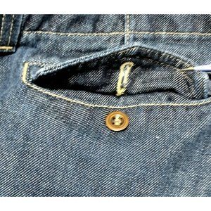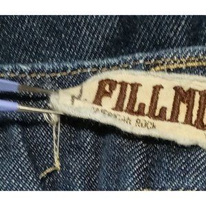Brand: Fillmore American Rock Size on tag: 31 (please see measurements for accuracy as all brands are different) Fabric: There are no tags other than the size. I do believe these to be 98-99% Cotton with a little stretch material blended in as these denim have a small amount of give. Condition: Very good pre-owned aside from missing tags and stain on inside pocket (see last photo.) Other: Front pockets, back pockets have flap closure with hidden buttons, darker wash denim, straight leg, possibly a boyfriend fit but I am unsure. All garments laid flat to measure and not stretched unless noted: Waist: 17.5" across; 35" around Rise: 9" Hips: 21" across; 42" around Inseam: 31" Leg Openings: 7.5" across; 15" around