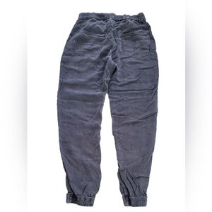 Comfortable and stylish gray blue jogger pants are perfect for everyday wear. Features an elastic waistband for a relaxed fit. I'd style these with sneakers and a white tee shirt.