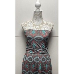 Filly Flair Strapless Maxi Dress Size M Pinks, Teal & Brown Excellent Condition. 23% nylon 30% rayon 3% spandex. Hand wash only line dryUnderarm to underarm 14 1/2Waist to hem 45 1/2A3