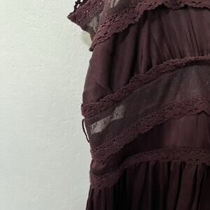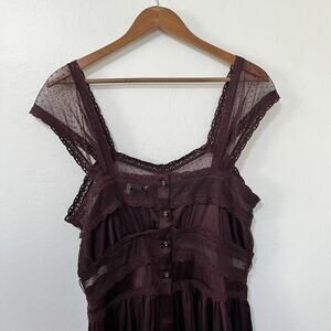 Fillyboo 100% Silk Sheer Camisole Mini Dress Size L Purple Dark Romantic Fairy