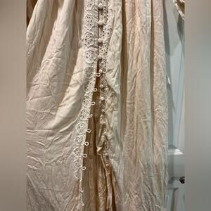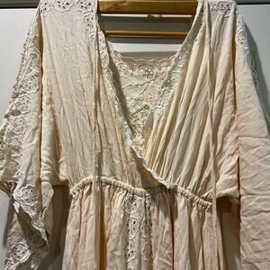 This Fillyboo sundress in a soft cream color is perfect for a wedding occasion, featuring a scoop neckline and long dolman sleeves. The dress flows beautifully with its airy fabric, offering a romantic and ethereal silhouette ideal for a bride or wedding guest. Beautiful embroidered details. Has oversized fit.