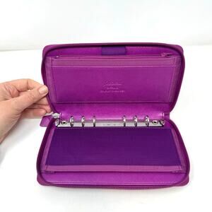 FiloFax Personal Compact Organizer Purple Saffiano Leather Planner Ring Zip