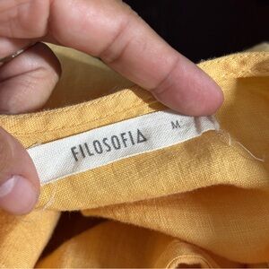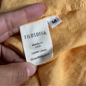 MEDIUM sam butter yellow 100% linen jumpsuit from FiloSofia. Pockets. Sleeveless. Tulip hem. Lightweight. Breathable. Made in the USA. In great preloved condition. Thank you for visiting my closet and supporting a small business. Check out the rest of my closet for similar styles and sizes! Bundle three items and save 15%