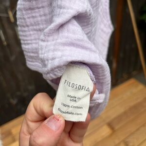 Filosofia brand, made in LA. 100% organic cotton. Size Small but fits a range of sizes. Slight discoloration on the back but not noticeable.