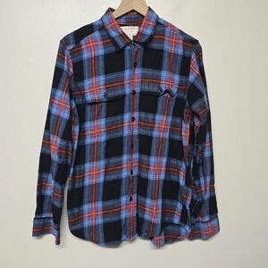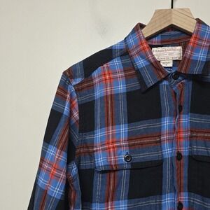 Filson Garment 100% Cotton Flannel Shirt Men's Small Red Blue Black Plaid Button