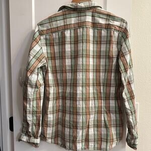 Filson Green Ivory Tan Plaid Button-Down Long Sleeve Shirt Womens Normcore