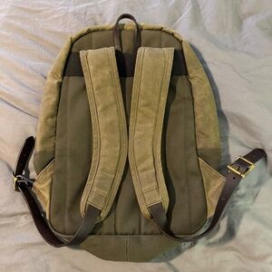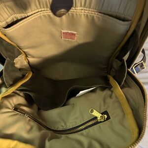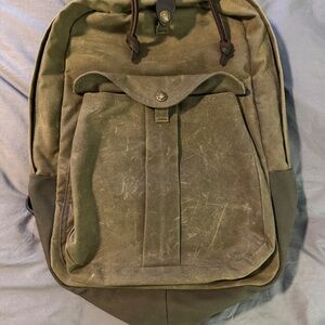 This is a waxed canvas backpack. I does have an oder to it, the same as you would find on any waxed canvas product. I am the original owner and I have used it a few times. It only has light wear with no rips, tears or stains. All zipper and snaps work. If you like old school stuff, you will like this. I have too many backpacks to some have got to go.