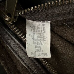 Filson Leather Backpack. Used with a couple marks throughout. Measures 17" by 16.5"