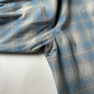 Filson Mens L Long Sleeve Button Shirt Twin Lakes Sport Plaid Blue Gray Gorpcore Style # 20277948