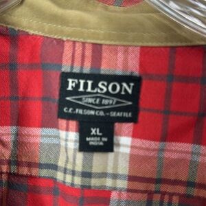 Filson Red plaid button-down shirt size XL. Good condition. Length is 31” and chest is 26.5”