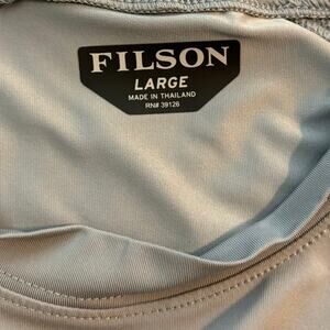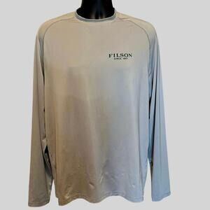 Filson long sleeve performance tee. Color is Flint Gray. There are some very faint spots similar to the picture above. Men’s Size Large.