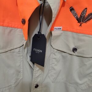 Filson Mens Sportsman Bright Orange and Tan Outdoor Shirt - Size M NWT
