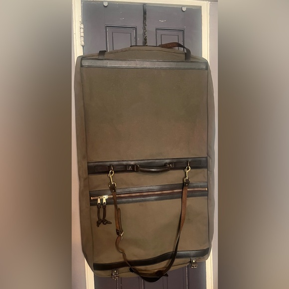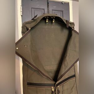Vintage, durable travel bag with spacious compartments. Features original sturdy handles and secure zippers. Ideal for travel needs. Slight discoloration due to age. Price negotiable!