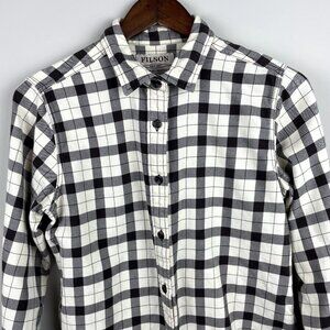 Filson Shirt Womens Medium Brown Cream Plaid Check Long Sleeve Button Up Casual