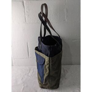 Filson Two Tone Tote Bag Canvas Green Navy w Pockets **Distressed with Stains
