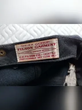 Filson 100% virgin wool low profile strap back baseball cap, adjustable for sizes L- XXL, very good clean, condition, no holes or stains, really no signs of wear I can see,