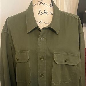 Filson Green Button Closure Pockets Long Sleeve Shirt, size XXXL. Has pockets, button closure, please note; has signs of wear.