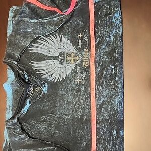 Filter Distressed T-shirt XLARGE Yeal Blue Black pit to pit 22in Used small hole back of shirt see pictures