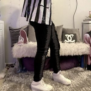 Filthy Wealth Jeans size 28 in good condition. Black with zig-zag down the leg.