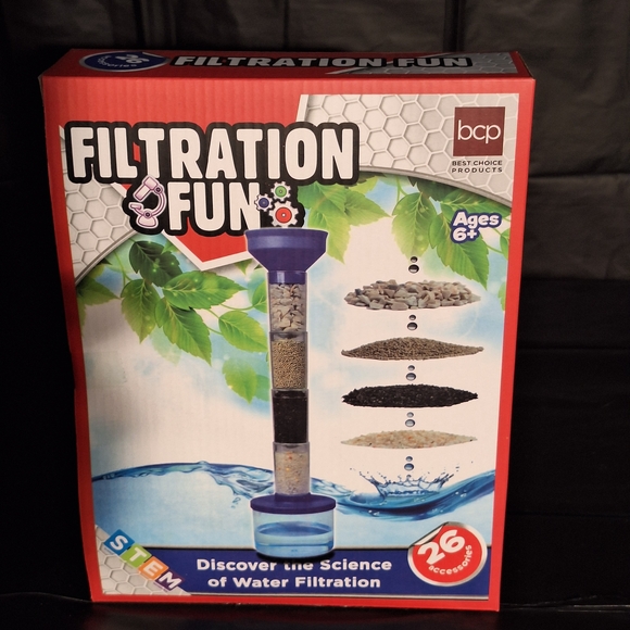 Explore the wonders of water filtration with the Filtration Fun Science Kit. This engaging kit features a blue filtration tube and 26 accessories, perfect for young scientists.