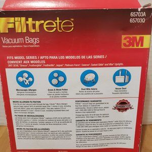 New in box Filtrete Dirt Devil Type U vacuum bags. Pkg. of 3 Comes from a smoke and pet-free home.