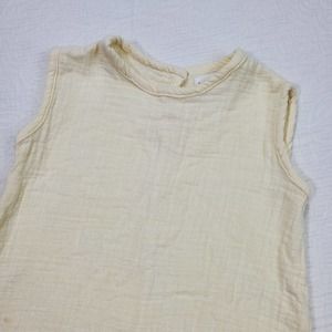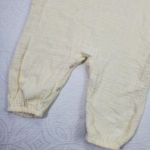 Size 12/24 months fin & Vince cream colored muslin romper with elastic ankles. Probably fits 18 months best, see measurements