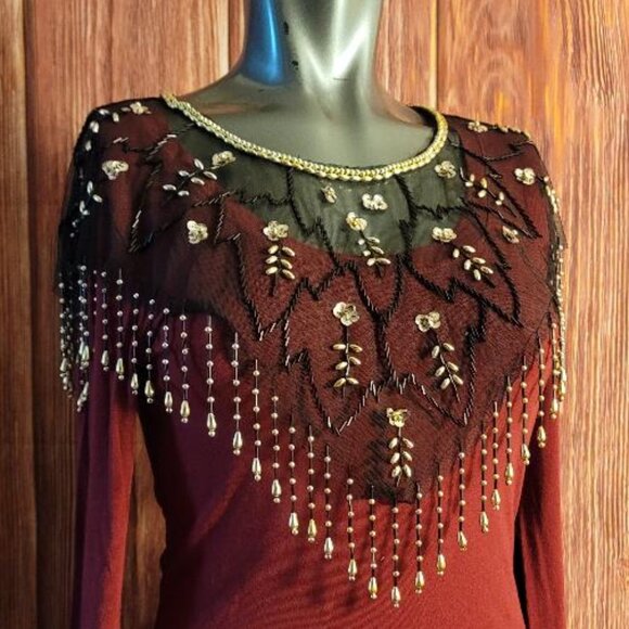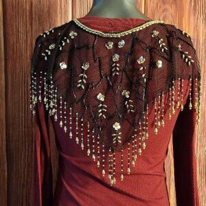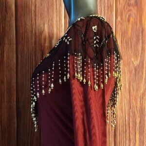 Fina Moda shoulder scarf. One size, 100% Polyester accentuating neckline accessory. *Maroon long sleeve sold separately.